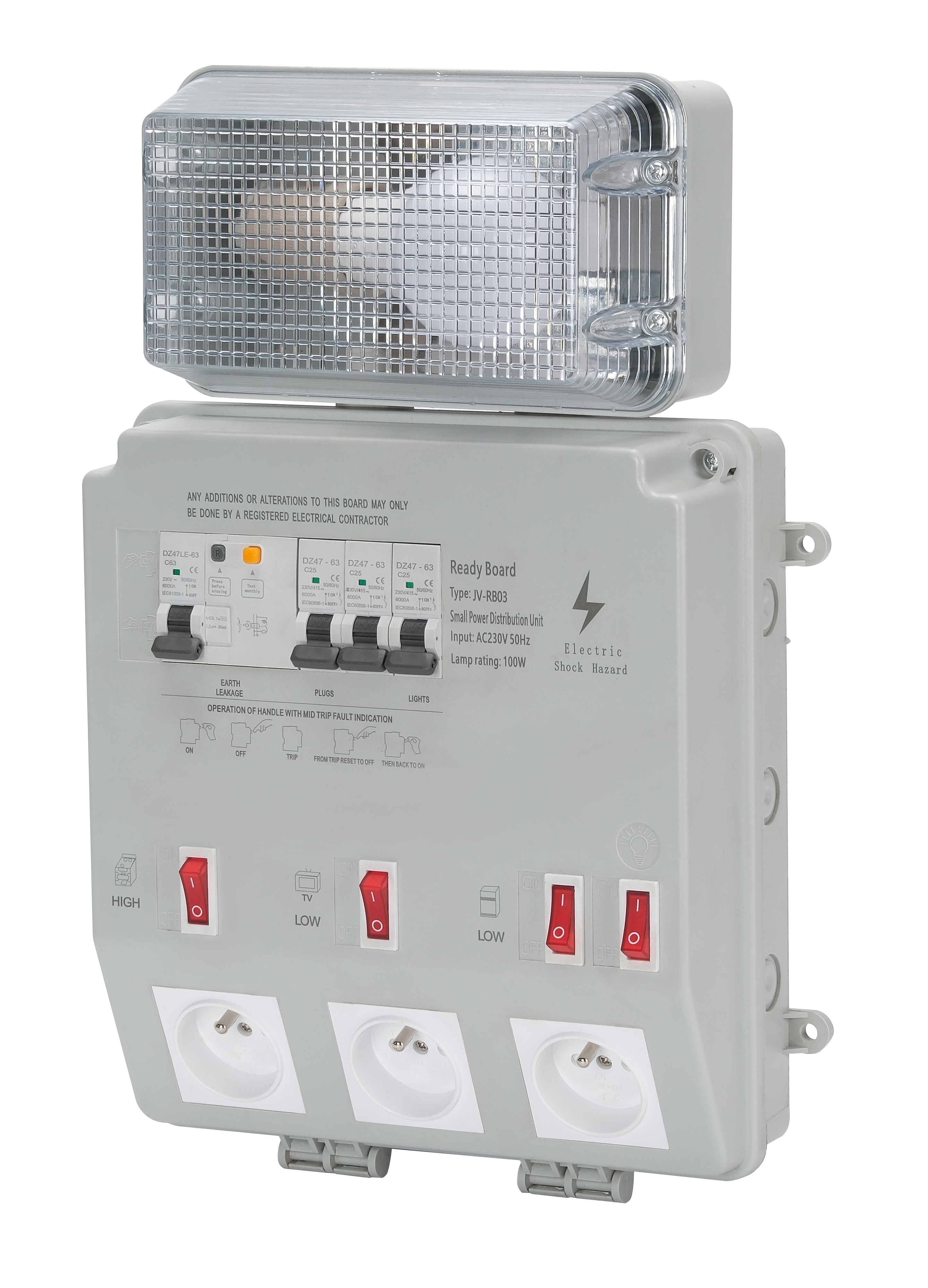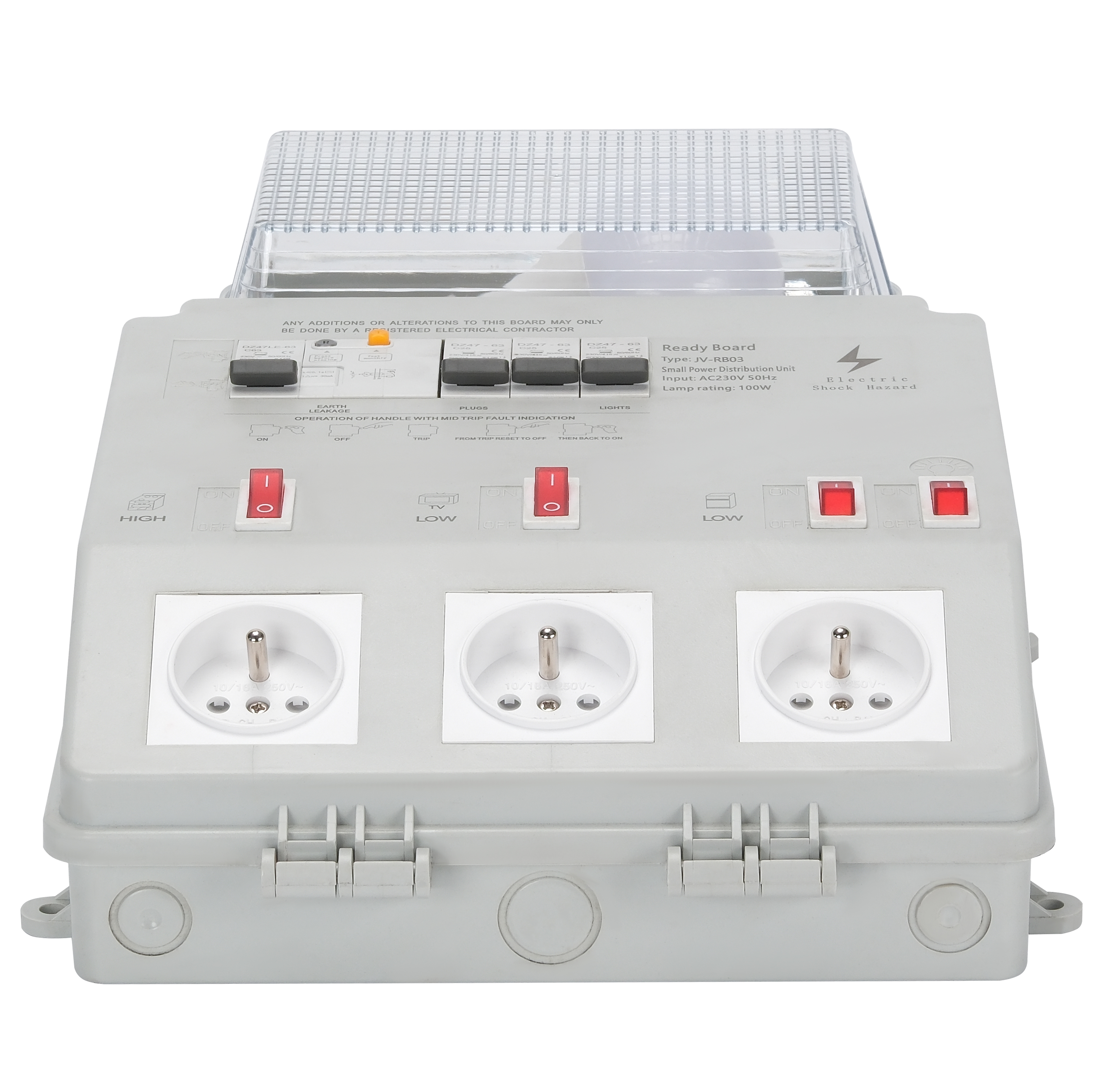 Power-on test: Turn on main power, check if sockets output normally (max 16A); test RCBO trip function to ensure safety protection works.